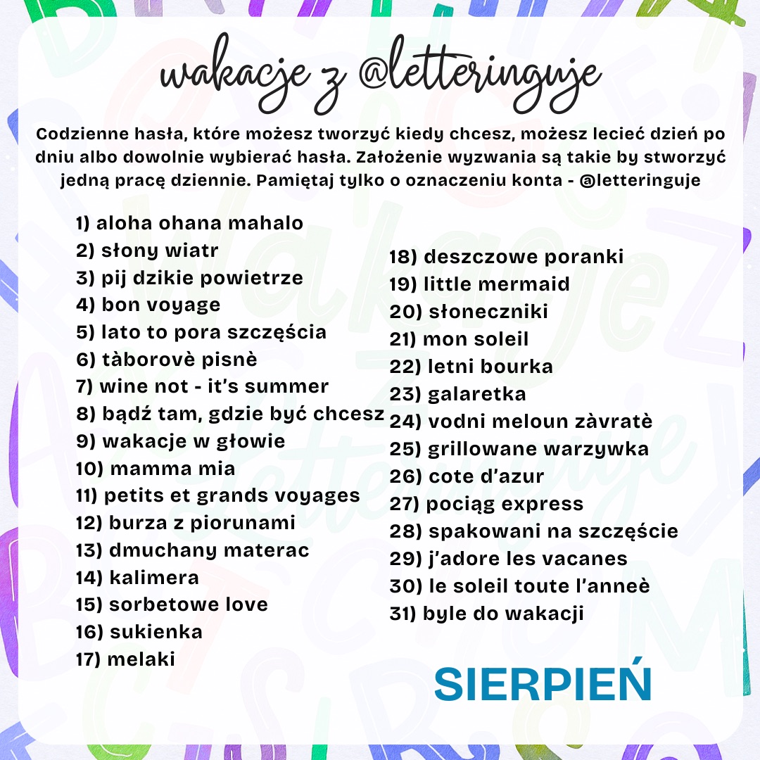 #wakacjezletteringuje Wzorniki z hasłami do wyzwania sierpień 2025